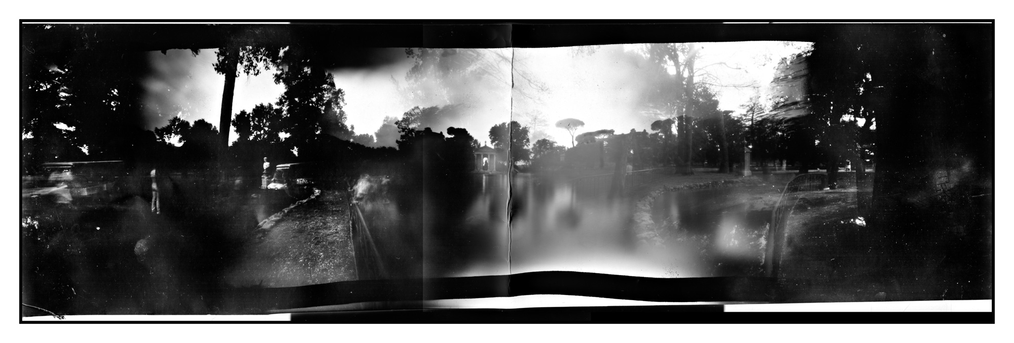 “Rotoforo” è un dispositivo che consente all’autore di sganciarsi dalla realtà visibile per entrare in una dimensione che ha a che fare con la percezione. La fotocamera è questo strumento che registra il visibile sulla base della nostra intenzionalità, e ci specchia porzioni di mondo. La pinhole è uno di questi strumenti e per come costruita ci ritorna una visione distorta della fisicità del mondo. Ma il punto è proprio qui. Se le cose esistono nel momento che le osserviamo, ora ciò che Baldassari costruisce è altrettanto reale. E potrebbe venire da chiedersi se non sia piuttosto distorta la percezione comune del mondo rispetto a quella dell’individuo. Usando un termine che usa l’autore il mondo filtrato attraverso il dispositivo viene amplificato, in una visione espansa, prolungata oserei dire, che consente all’osservatore di restare nello spazio e percepire altro e di percepire diversamente. L’autore è chiaro in questo “Through the pinhole, photography becomes an act of intimate and subjective observation, a form of interpreting the landscape that surpasses the visible surface”. Il termine superficie qui è fondamentale e pertinente. Come se il visibile fosse un velo che impedisce di percepire davvero. E qui sta la distinzione tra un “ri-conoscere” oggettivo e un “dis-conoscere” soggettivo.